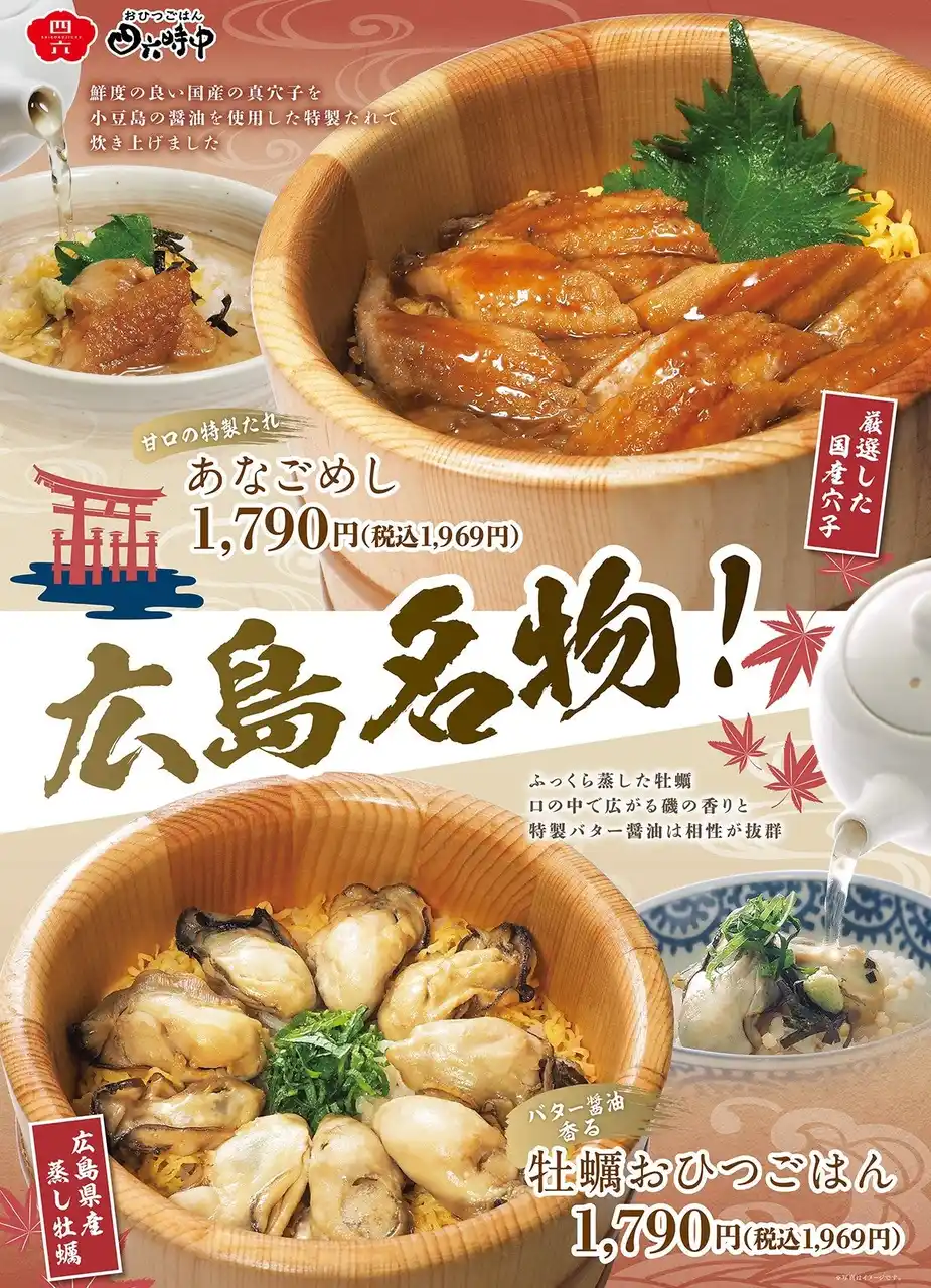 当店では、こうした立地特性を踏まえ、お食事だけでなく和カフェとしても利用できる新たな店舗モデルを導入、さらに地域特性を反映した限定メニューとして広島県産牡蠣を使用した「牡蠣おひつごはん」や国産あなごを使用した「あなごめし」をご用意いたしました。今後も本出店を起点に広島市周辺における店舗網拡大とブランド価値向上を図るとともに、立地特性に応じた最適な店舗モデルの展開を通じて、より多くのお客さまに新たな「食」の楽しさを提供してまいります。 |