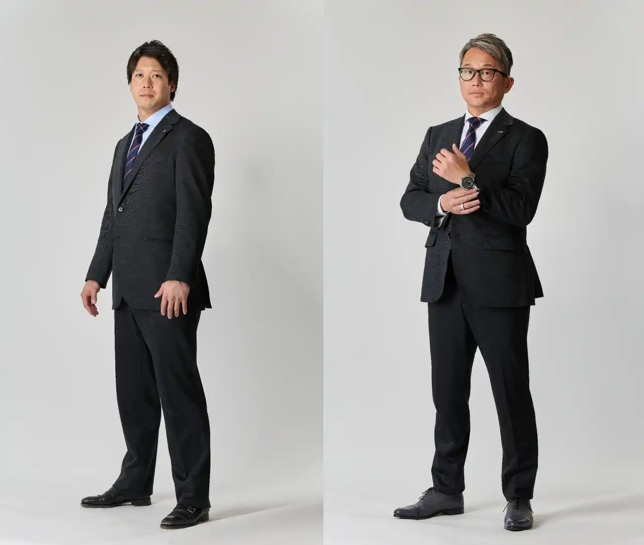 ・最高級のシルエットとこだわり:洋服の青山の最上級ブランド「HILTON(ヒルトン)」の型紙を採用し、アスリートの体型を美しく見せるシルエットを実現しました。 |