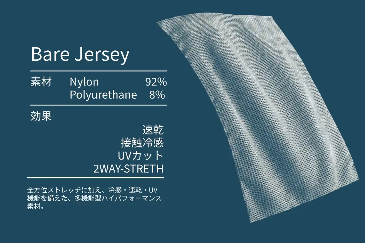 生地性能はライフスタイルラインと同じく、接触冷感・UVカット・速乾・抗菌防臭、そして特許取得の放熱×遮熱テクノロジーを共通採用。 |