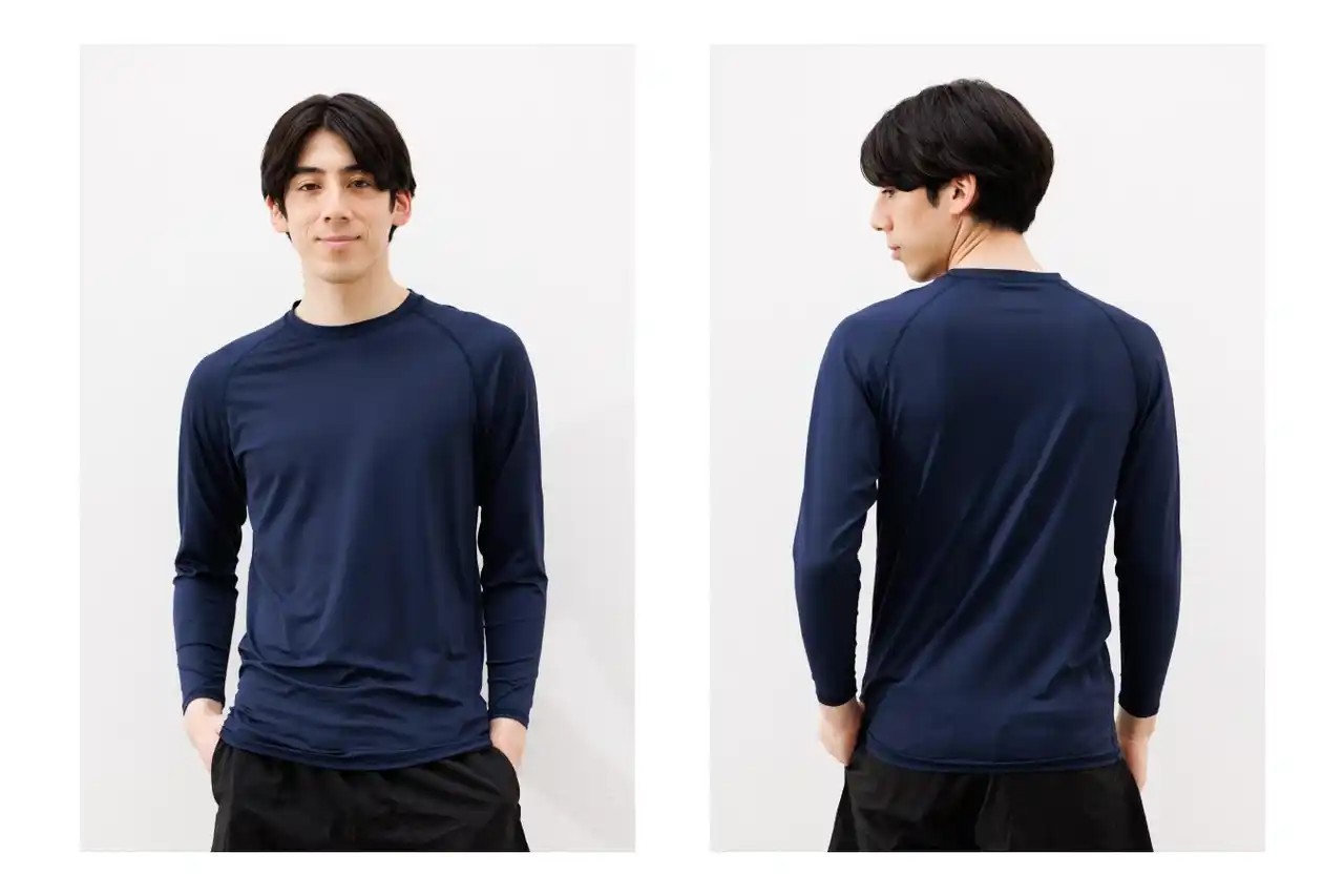 シンプルで使いやすいUネックタイプ。屋外スポーツ・通勤・作業着のインナーまで幅広いシーンに対応するメンズ向け長袖シャツです。 |