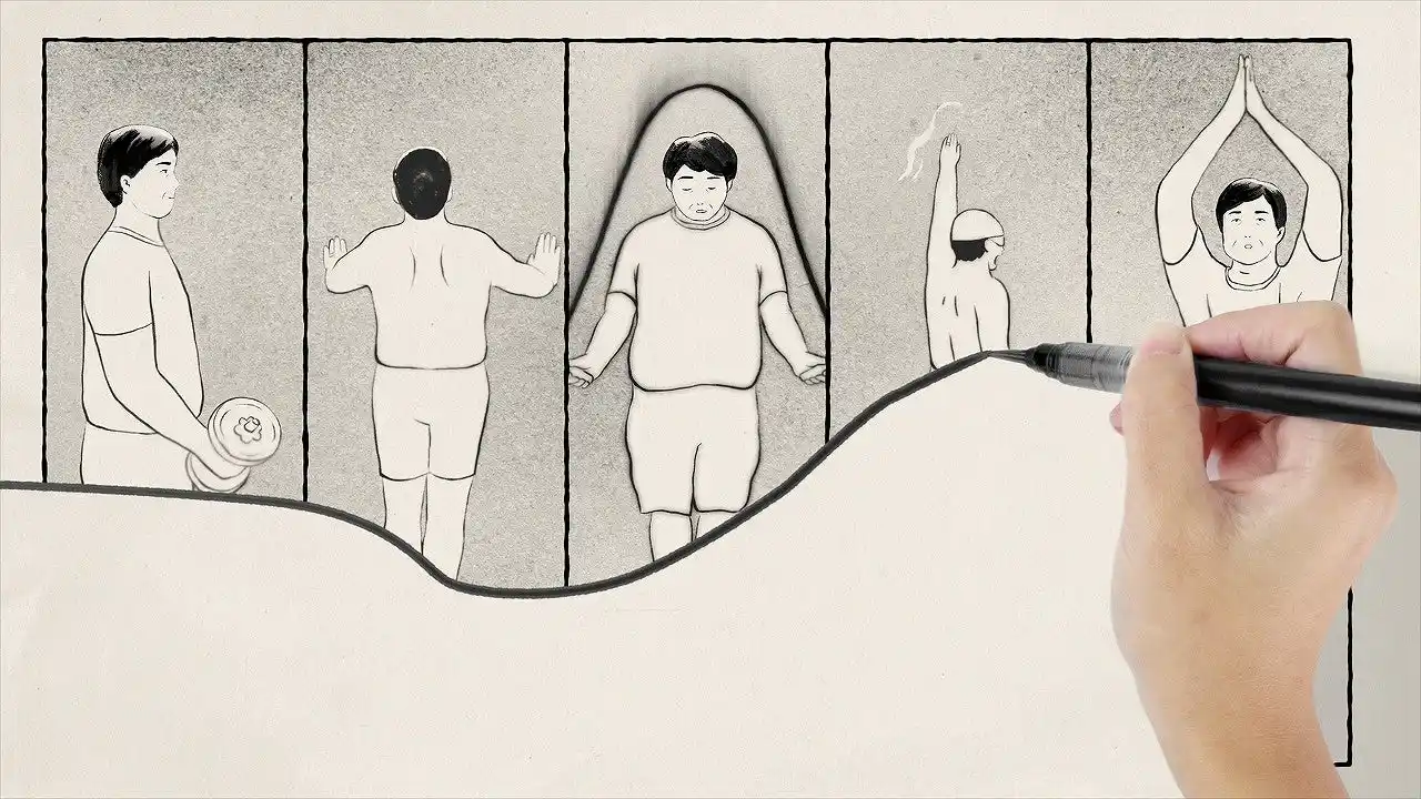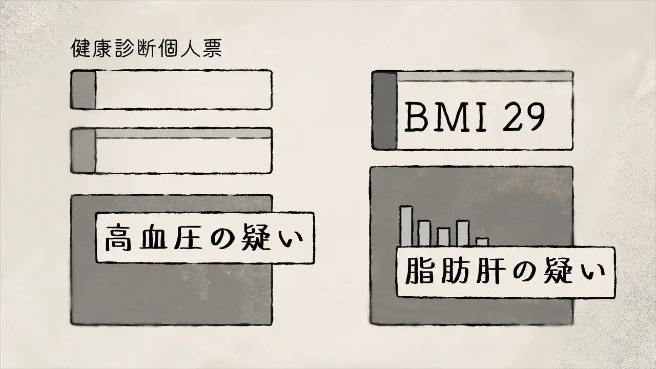 本作は、家族のために減量を試みる40代の肥満症のある男性と、それを見守る家族の心温まるストーリーです。ある日届いた健康診断の結果には高血圧と脂肪肝の疑い、そして減量が必要という指摘が書かれていました。家族のためにも健康でいないと、という気持ちで減量の努力を開始する男性ですが、体重の増減を繰り返し思い通りに減量体重を維持できない日々が続き、男性は「努力が足りないのかな」と悩み、家族はそれに寄り添います。