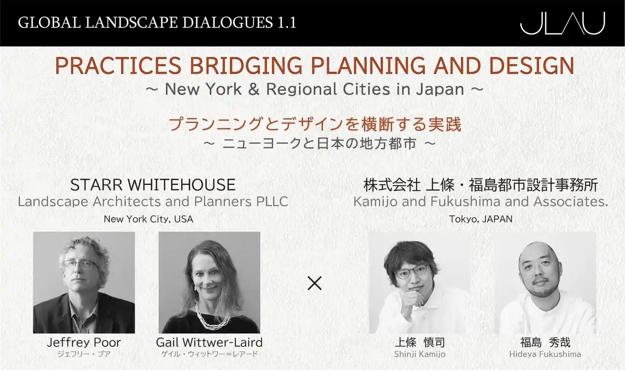 JLAU(一般社団法人ランドスケープアーキテクト連盟)は、海外と日本のランドスケープ実務者・教育者・専門家が、異なる地域の実践を比較しながら互いの知見と経験を共有し、地域のコンテクストから生まれるランドスケープの多様性や共通性を探究することを目的としたオンライン・トークシリーズ「Global Landscape Dialogues」を開催いたします。 |
