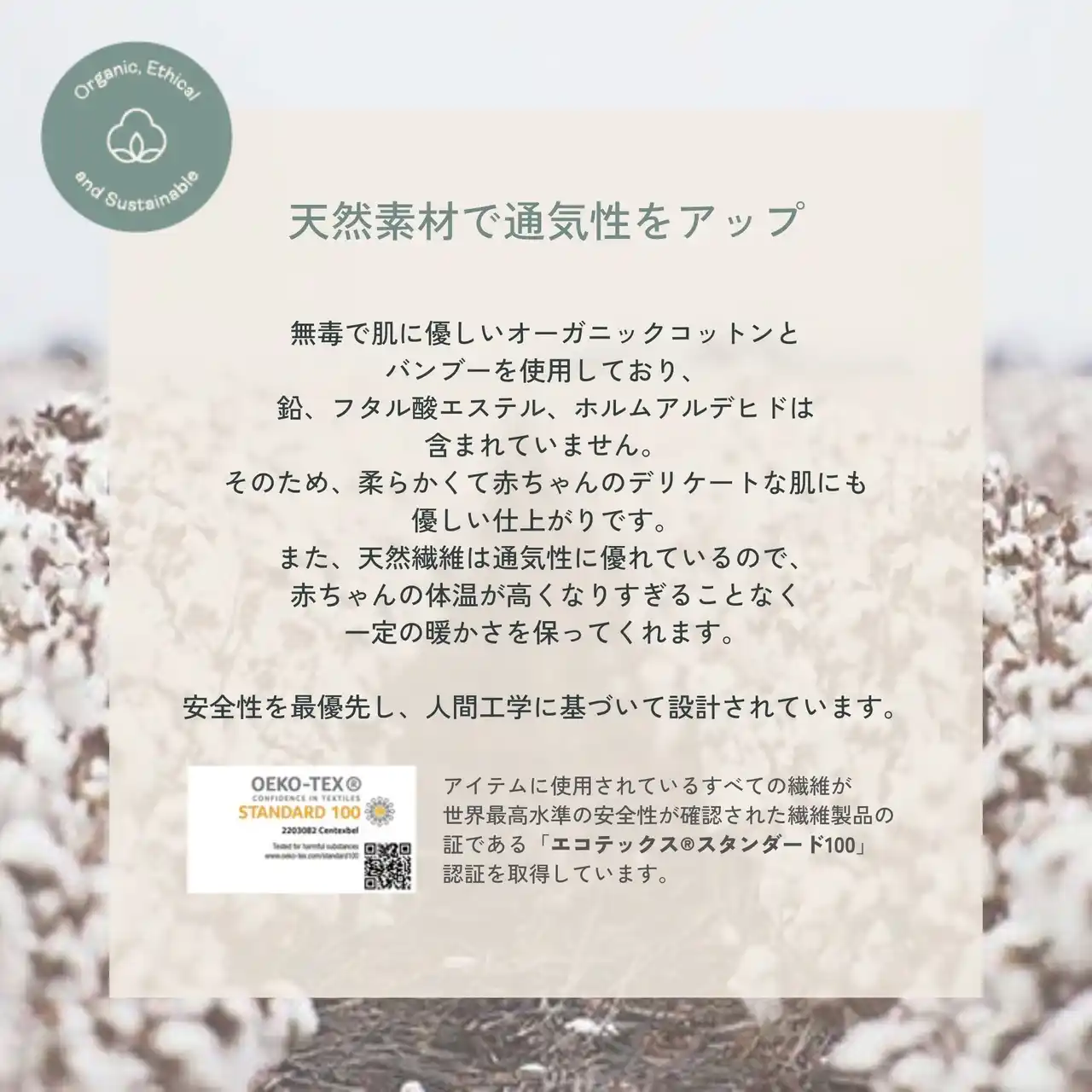 素材:オーガニックコットン 95% /ポリウレタン 5%(伸縮性のある素材を使用) |