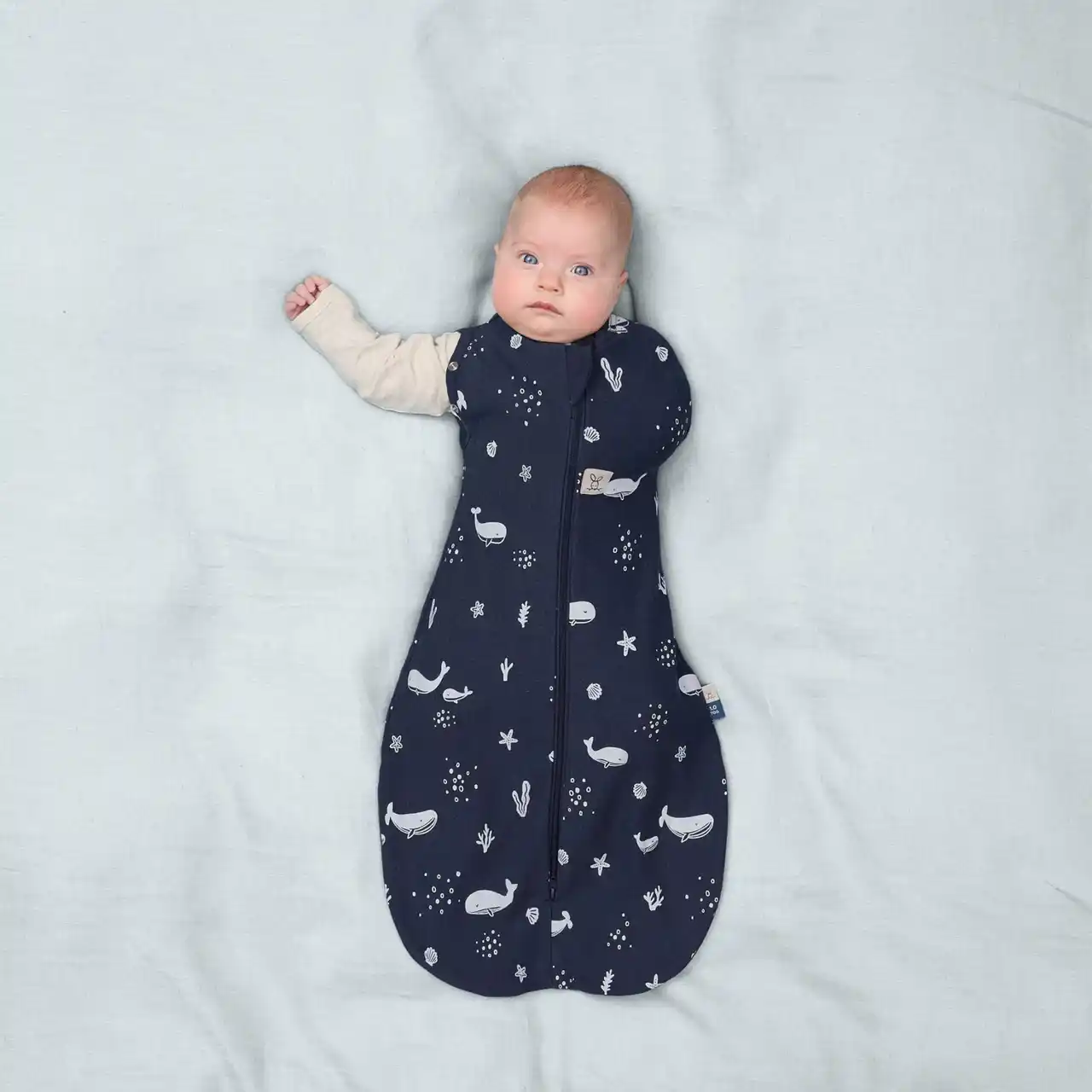 ジップ式なので誰でも簡単に着脱できます。室温に合わせて生地の厚みを選べるTOG規格のアイテムは、掛け布団を使用せずに赤ちゃんが安全に眠れる環境を整えることができます。(必要に応じて中に肌着やロンパースなどのレイヤーを着せてください。) |