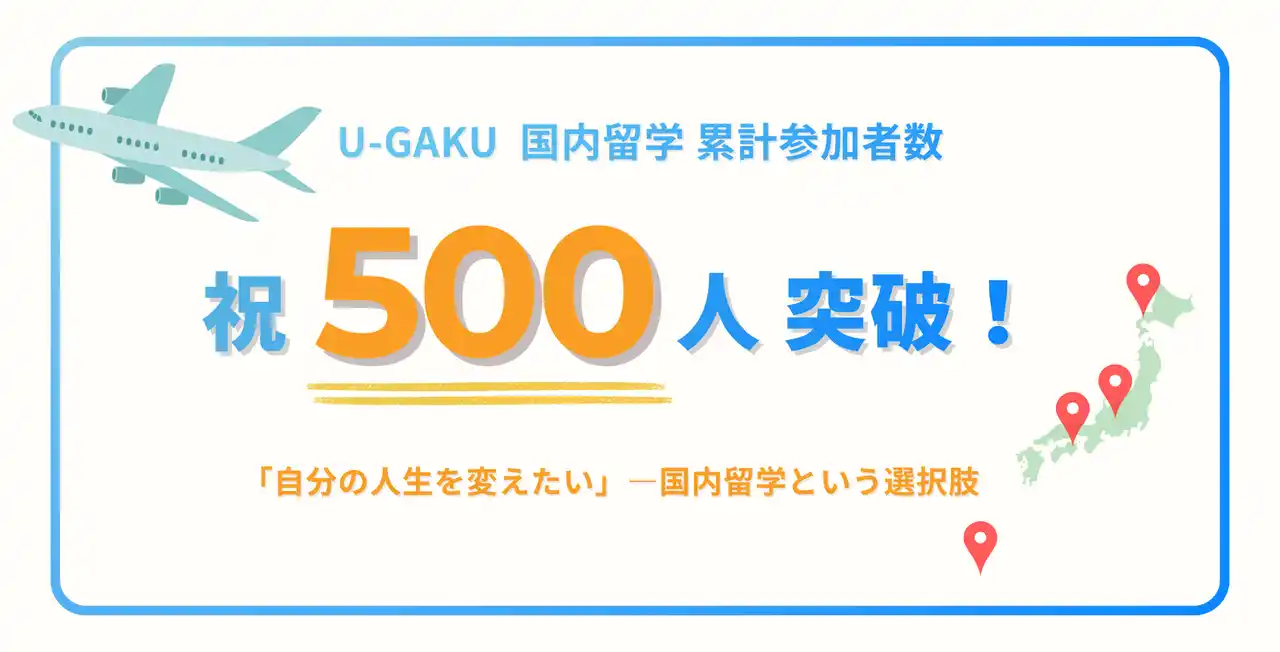 株式会社Crepity(本社:東京都、代表取締役:生雲勝之)が運営する、留学プログラム「U-GAKU(ユーガク)」では、国内留学サービスの累計参加者数が500名(キャンセル除く)を突破したことをお知らせいたします。昨今の円安や渡航費高騰により海外留学のハードルが上昇する中、U-GAKUでは国内にいながら非日常の没入環境の中で自分自身と向き合い、新しい一歩を踏み出せる国内留学の選択肢を提供しています。本リリースでは、国内留学の定義および社会的背景についてお知らせいたします。 |