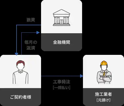 金融機関の審査不要でスピーディー:本サービスは「工事の請負契約」または「売買契約」であり、金銭消費貸借契約(借金)ではありません。金融機関による煩雑な融資審査の手間を省き、スピーディーに資金調達・導入が可能です。 |