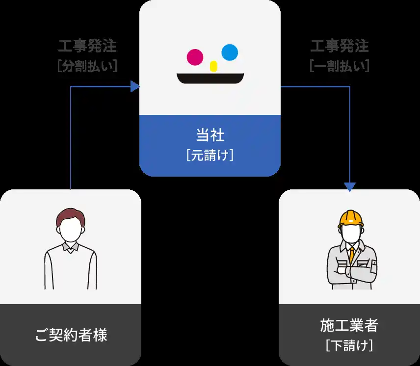 上場企業の信用力で実現:当社の東証グロース市場上場企業としての信用力と、金融機関との提携による「債権流動化」の仕組みにより、オーナー様のリスクを最小限に抑えた分割払いプランを実現しています。 |