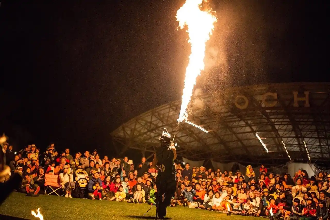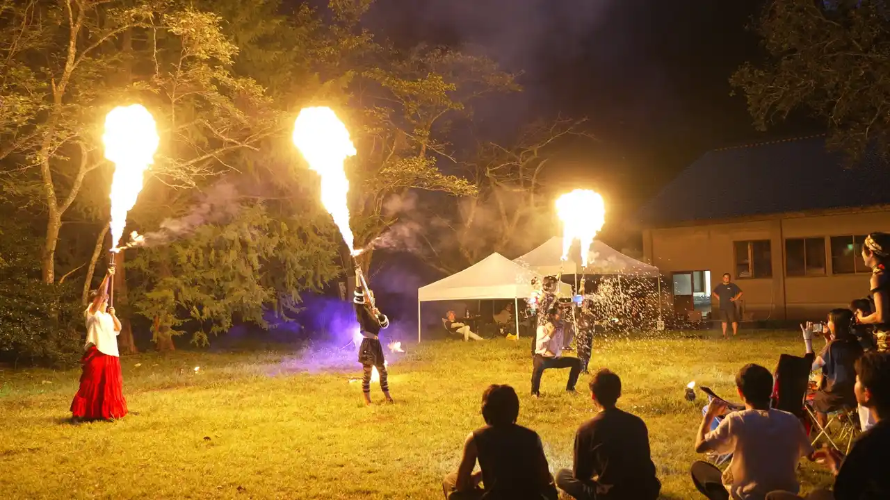 夜にはトップパフォーマーたちによる大迫力のファイヤーショーが開催されるほか、参加者同士が安全にパフォーマンスを楽しめるファイヤーエリアの開放、広大なグラウンドでのキャンプインなど、大自然とノスタルジックな木造校舎に囲まれた非日常の空間で、濃密なエンターテインメント体験を提供いたします。 |