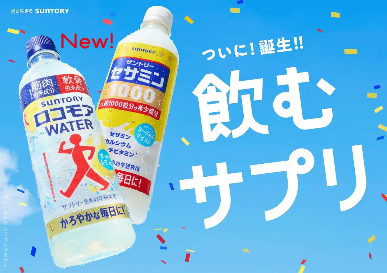【サントリービバレッジ&フード株式会社】 「ロコモア」「セサミン」ブランドから、“飲むサプリ”シリーズが登場 40代以上の健康習慣の新たな選択肢手軽においしく栄養を取れる『ロコモアWATER』『セサミン1000』2品同時発売