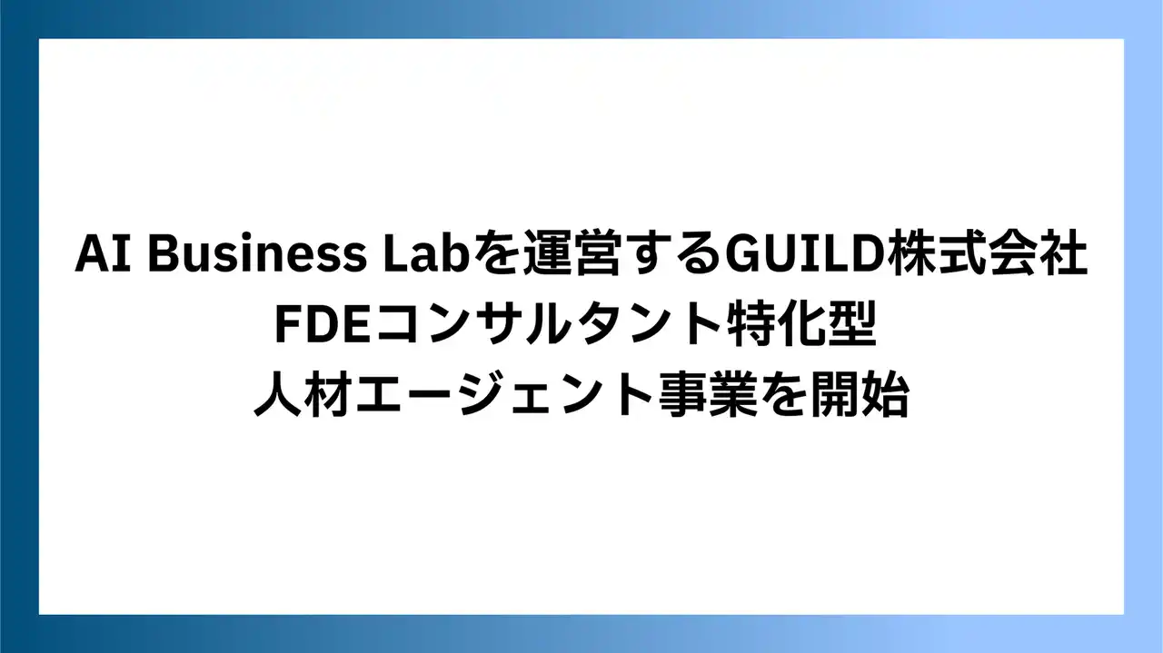AI Business Labを運営するGUILD株式会社(所在地:東京都渋谷区神宮前、代表:小宮 滉)は、本日、FDE(Forward Deployed Engineer=フォワードデプロイドエンジニア)コンサルタントに特化した人材エージェント事業を開始することをお知らせいたします。 |