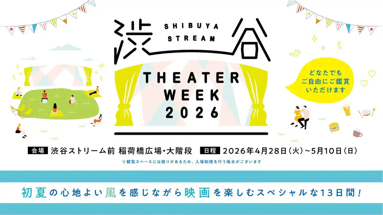 株式会社東急レクリエーション(本社:東京都渋谷区、社長:木村知郎)は、渋谷ストリーム前 稲荷橋広場・大階段にて、2026年4月28日(火)より、人気映画全29作品をご自由にご鑑賞いただける「SHIBUYA STREAM THEATER WEEK 2026」が開催され、その運営を実施することを発表します。 |