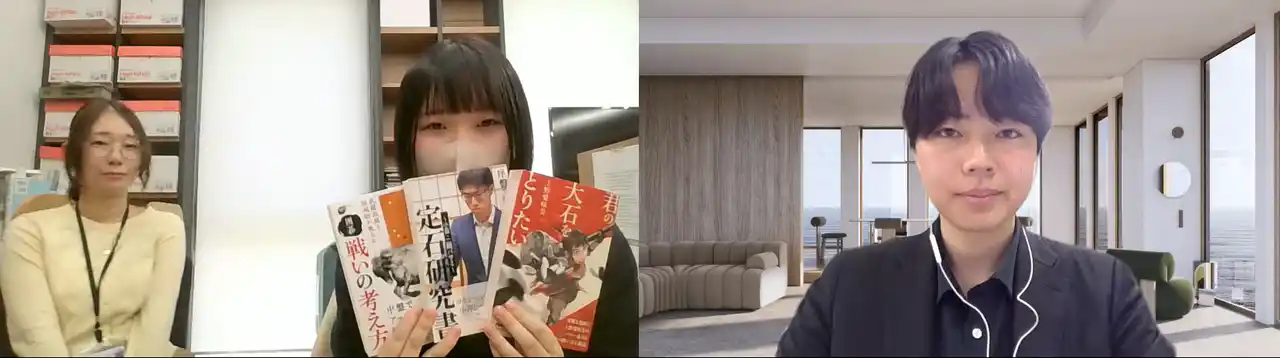 2026年3月31日(火)、大阪国際中学校高等学校の高校2年生の北本美月さんによる囲碁書籍の担当編集者・森下大地へのインタビュー企画を実施しました。全国高等学校囲碁選手権大会全国大会への出場経験を持つ北本さんは、囲碁界の普及に関心を持っており、囲碁書籍の担当編集者である森下に対してオファーがあり企画が実現。囲碁書籍の制作で心掛けていることや、囲碁業界の普及にはどのような要素が必要なのかをお話しました。 |