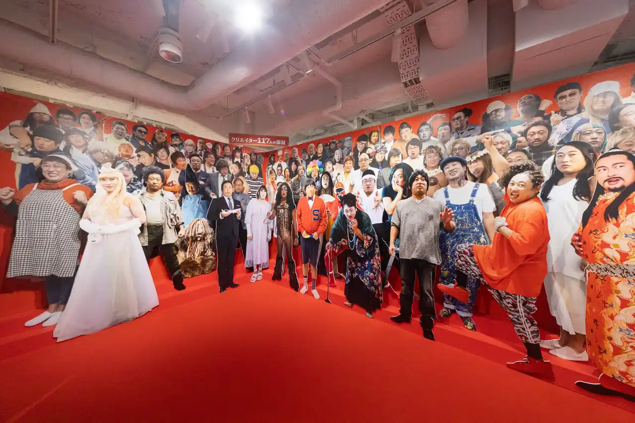 これまでに登場した100人を超える全クリエイターが勢揃いする部屋でお出迎え!最新のクリエイター「事実上シャンでりあ」も登場!はやくも胸やけ間違いなしのフォトスポット! |