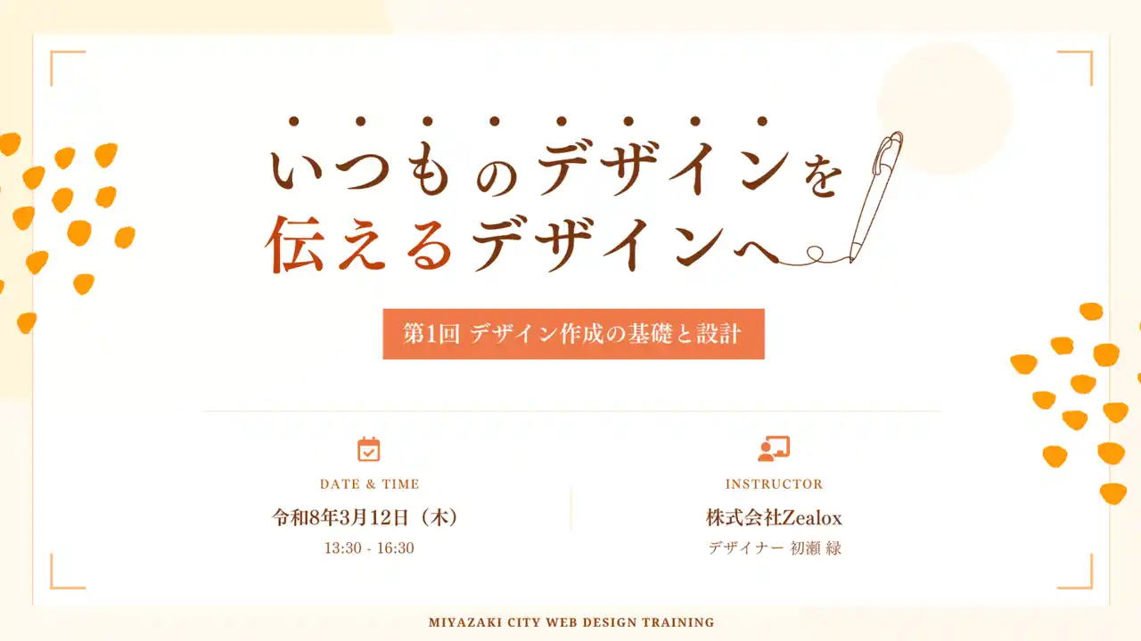 株式会社Zealox(本社:東京都港区、以下 Zealox)は、女性専用WebデザインスクールFind me!(https://findme-school.com)を運営しております。今回は宮崎市広報職員の皆様向けに3月12日・19日に「いつものデザインを伝えるデザインへ」 Webデザイン研修を実施いたしました。 |