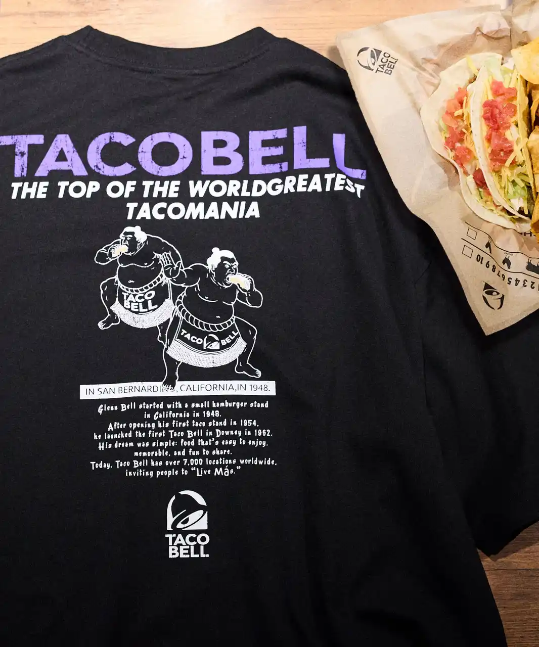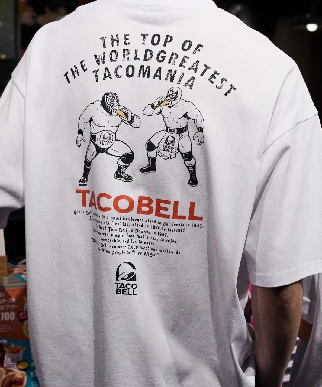 世界で7,000店舗以上を展開する世界最大級のメキシカン・ファストフードチェーン「タコベル」とのコラボTシャツが登場。日本の伝統文化とカリフォルニアの自由な空気が交差する、唯一無二のコレクションが誕生しました! |