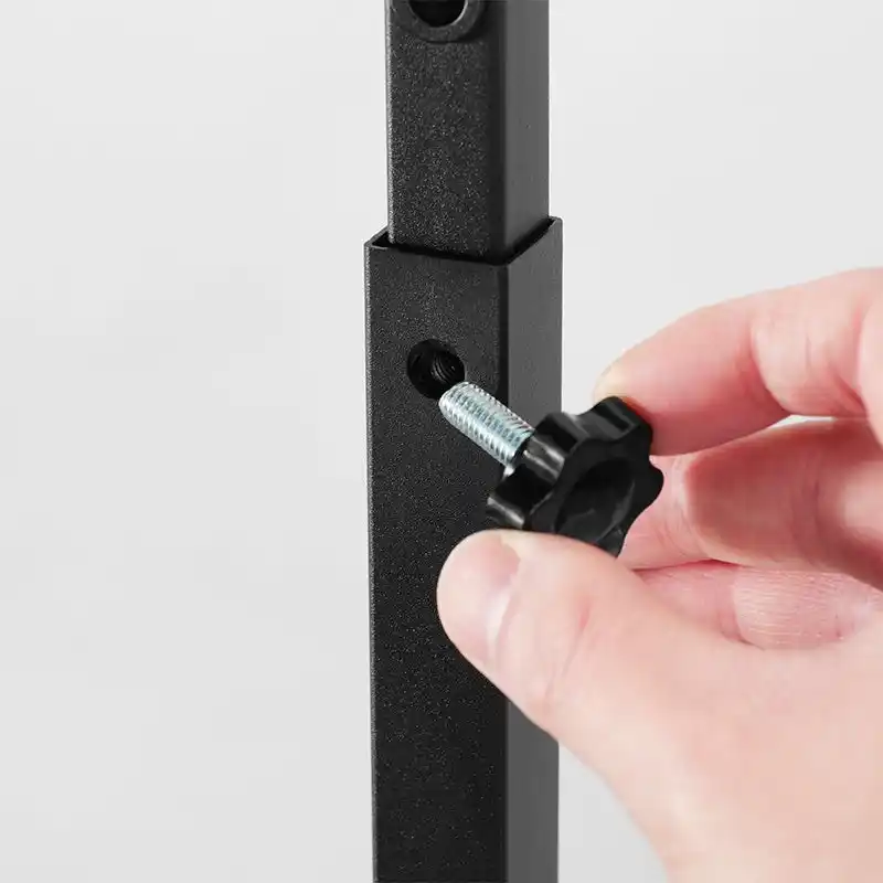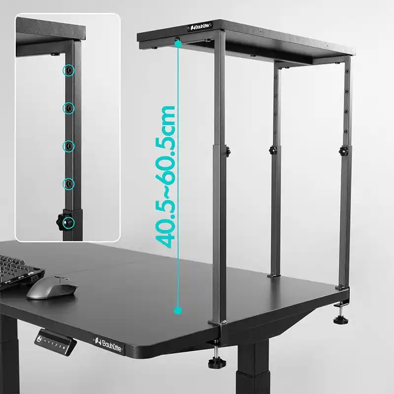 5cm間隔・5段階の高さ調節(40.5~60.5cm)に対応し、あらゆるPCサイズに合わせた最適なセッティングを実現。PC天面との間に意図的な空間を設けることで、排熱を阻害しない配置を実現します。手回し可能なノブボルトを採用しているため、設置・調節に際して別途工具は不要です。 |