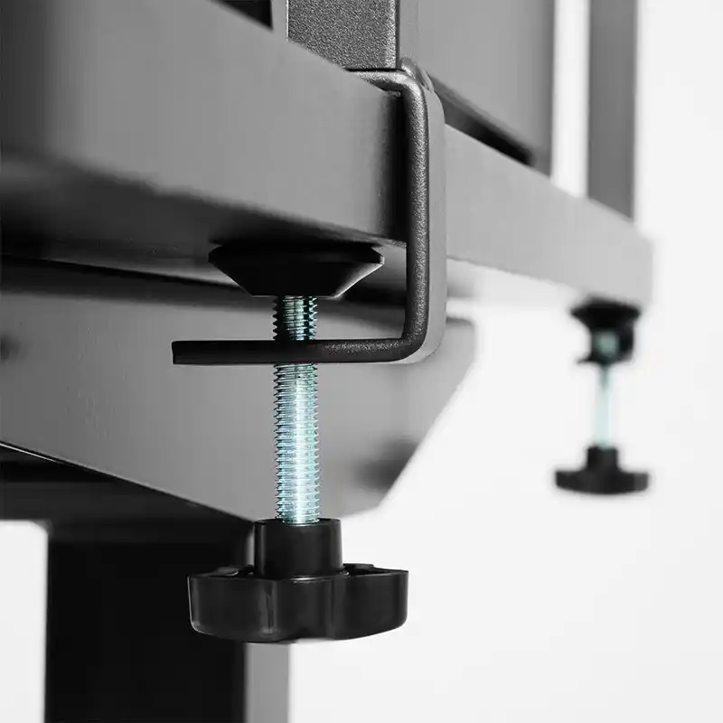 デスクへの取り付けは、3箇所のクランプでしっかりと固定可能。デスクに穴を開けずに、好きな場所へ移動・固定ができます。※天板裏に4cm以上の余白が必要 |