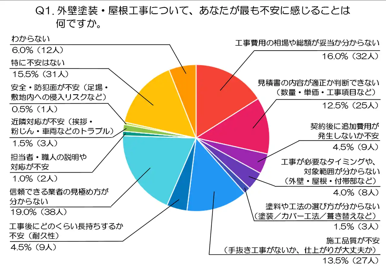 Q1.外壁塗装・屋根工事について、あなたが最も不安に感じることは何ですか。 |