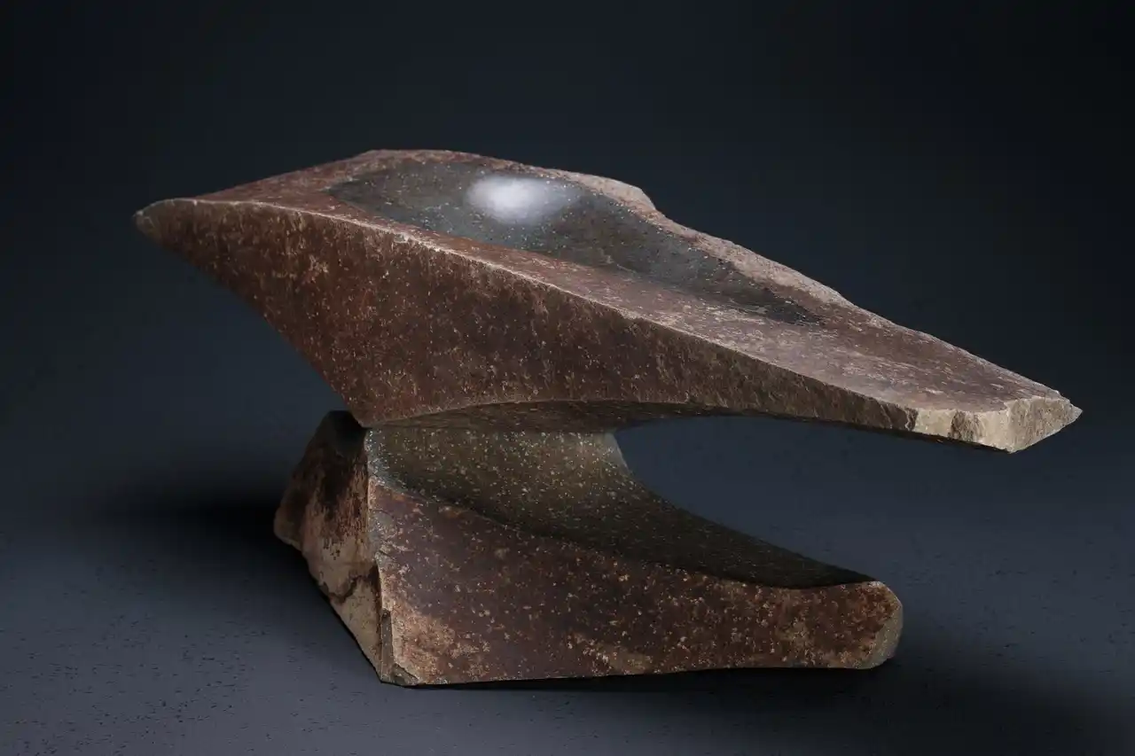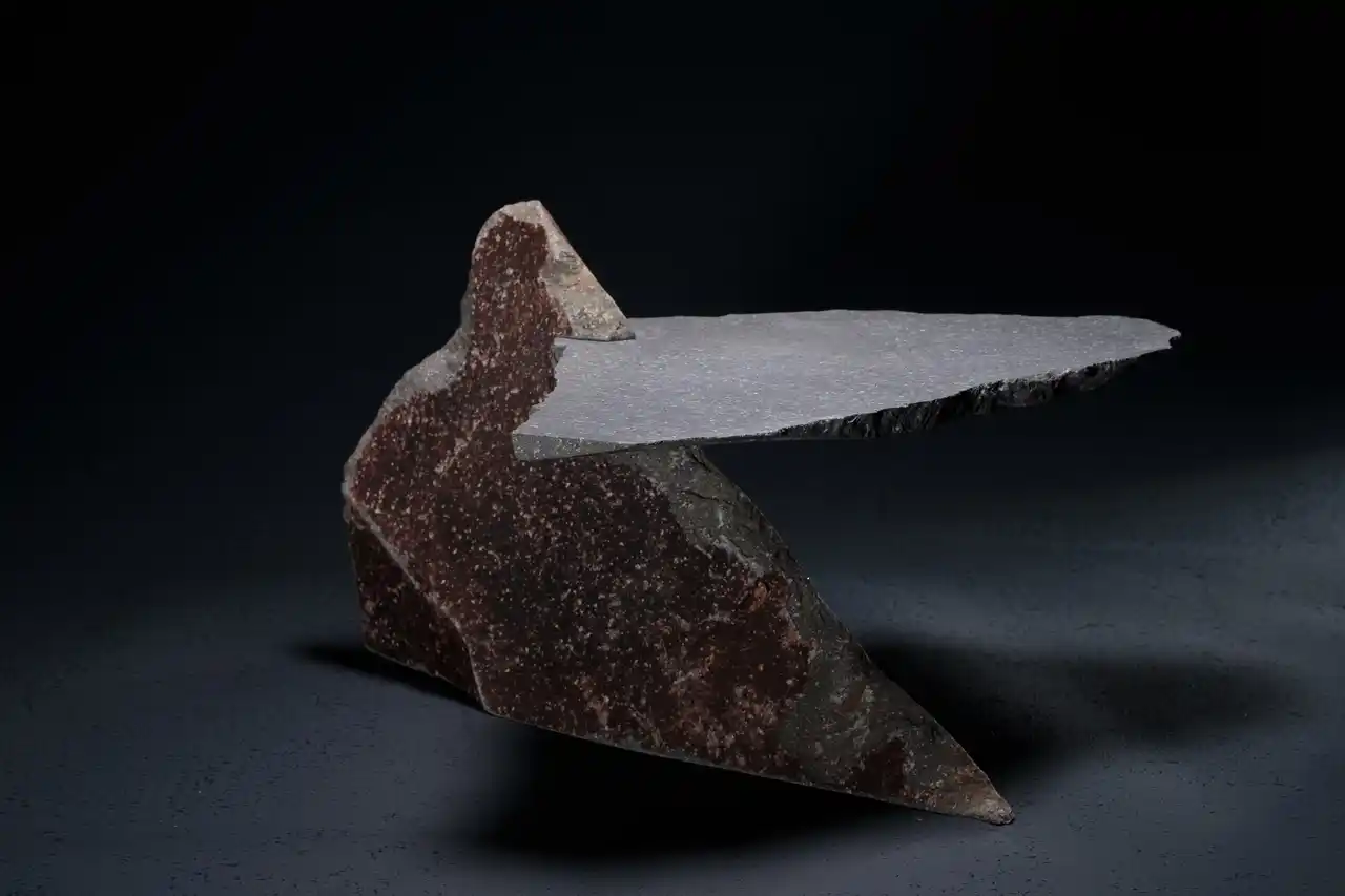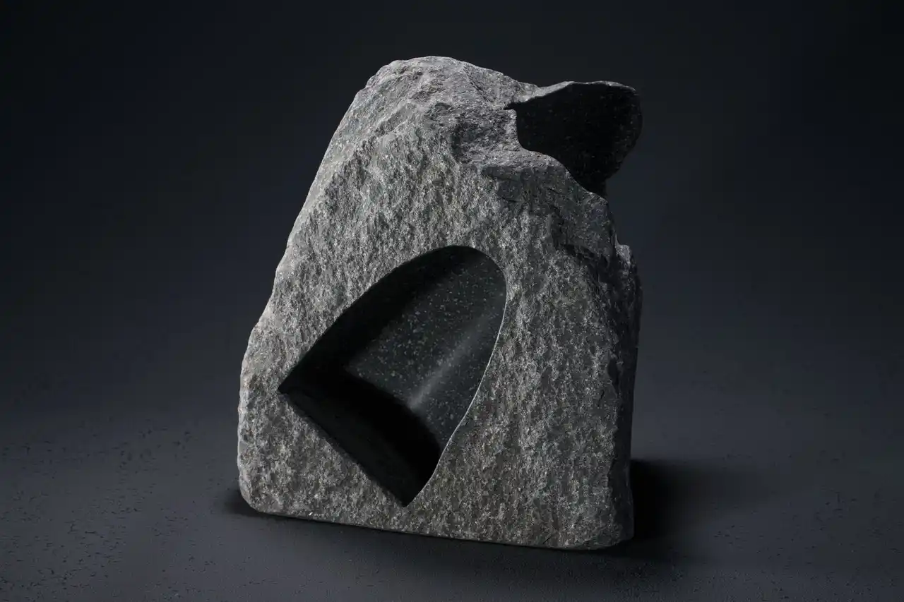 石匠と漆芸作家・武藤久由氏によるコラボレーション作品。40万年の時を経た石の力強さと、漆の艶やかな光沢が響き合い、素材の対話を通じた新しい美を提示します。 |