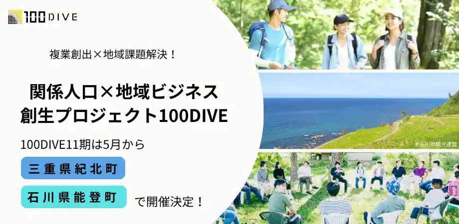 2026年5月から開催される100DIVE 11期プロジェクトの舞台が、三重県紀北町・石川県能登町に決定しました。 |