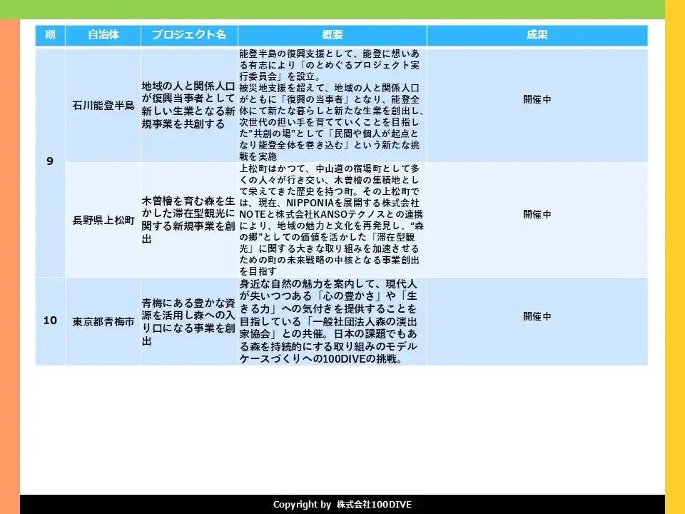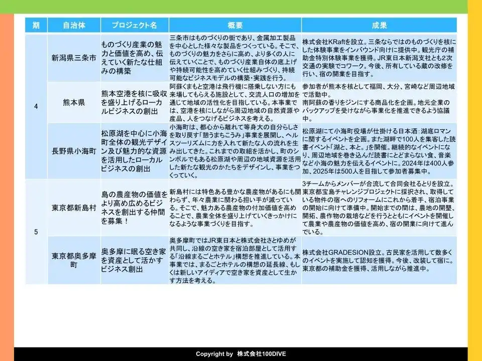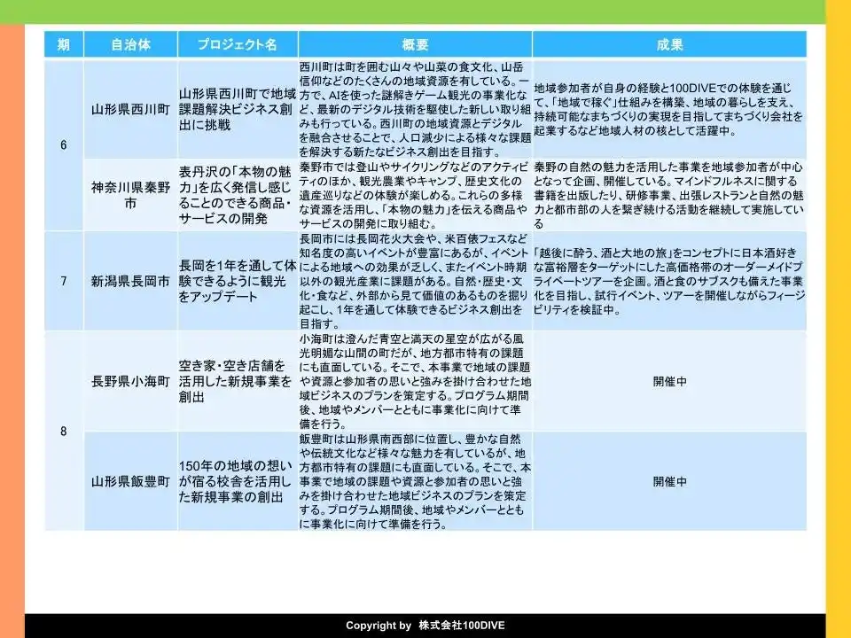 複業×ローカルビジネス創出プロジェクト「100DIVE」。 |