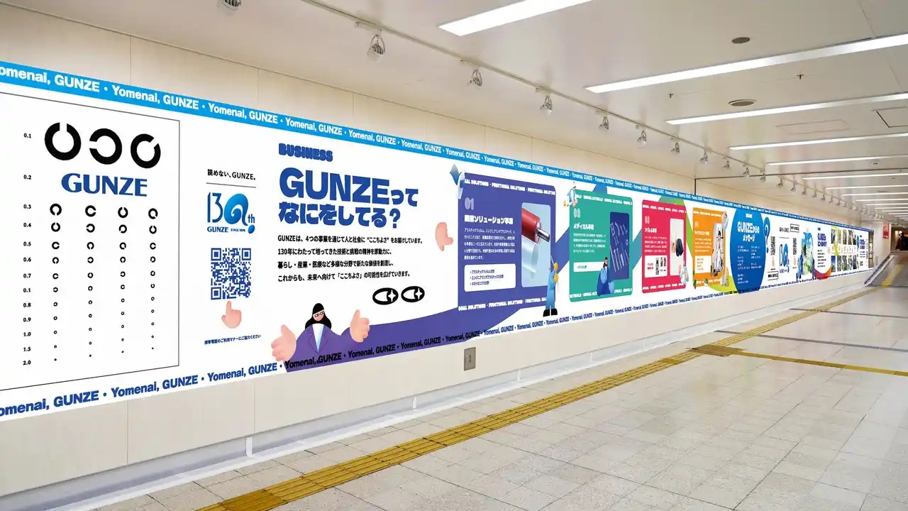 グンゼ株式会社(本社:大阪市北区、社長:佐口 敏康)は、2026年4月6日(月)より、創業130年プロジェクトとして「グンゼ130周年」広告の掲出をJR大阪駅桜橋アベニューにて開始しました。 |