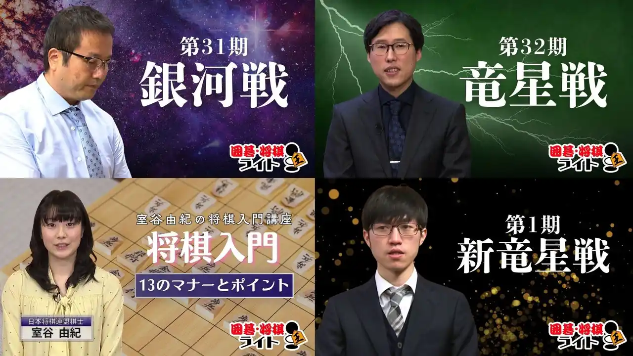 「囲碁・将棋ライト」では囲碁・将棋チャンネル公式棋戦の囲碁『竜星戦』、将棋『銀河戦』の過去放送対局を中心に放送予定です。 |