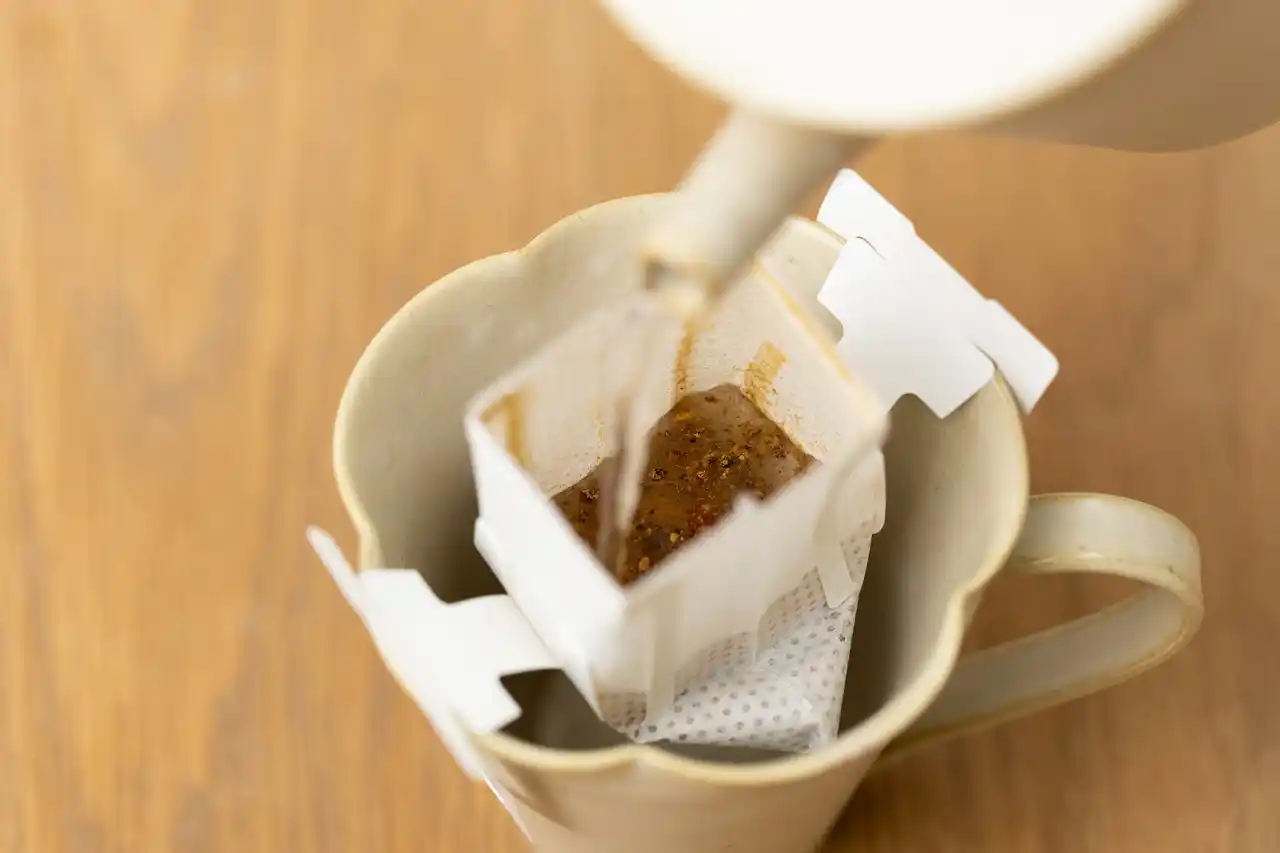 ドリップ式だからお湯を注ぐと簡単にかつお出汁がとれる |