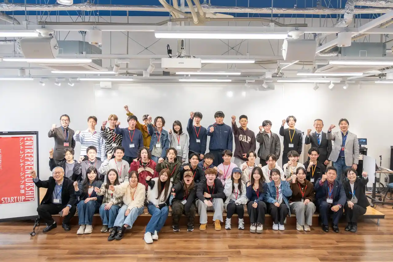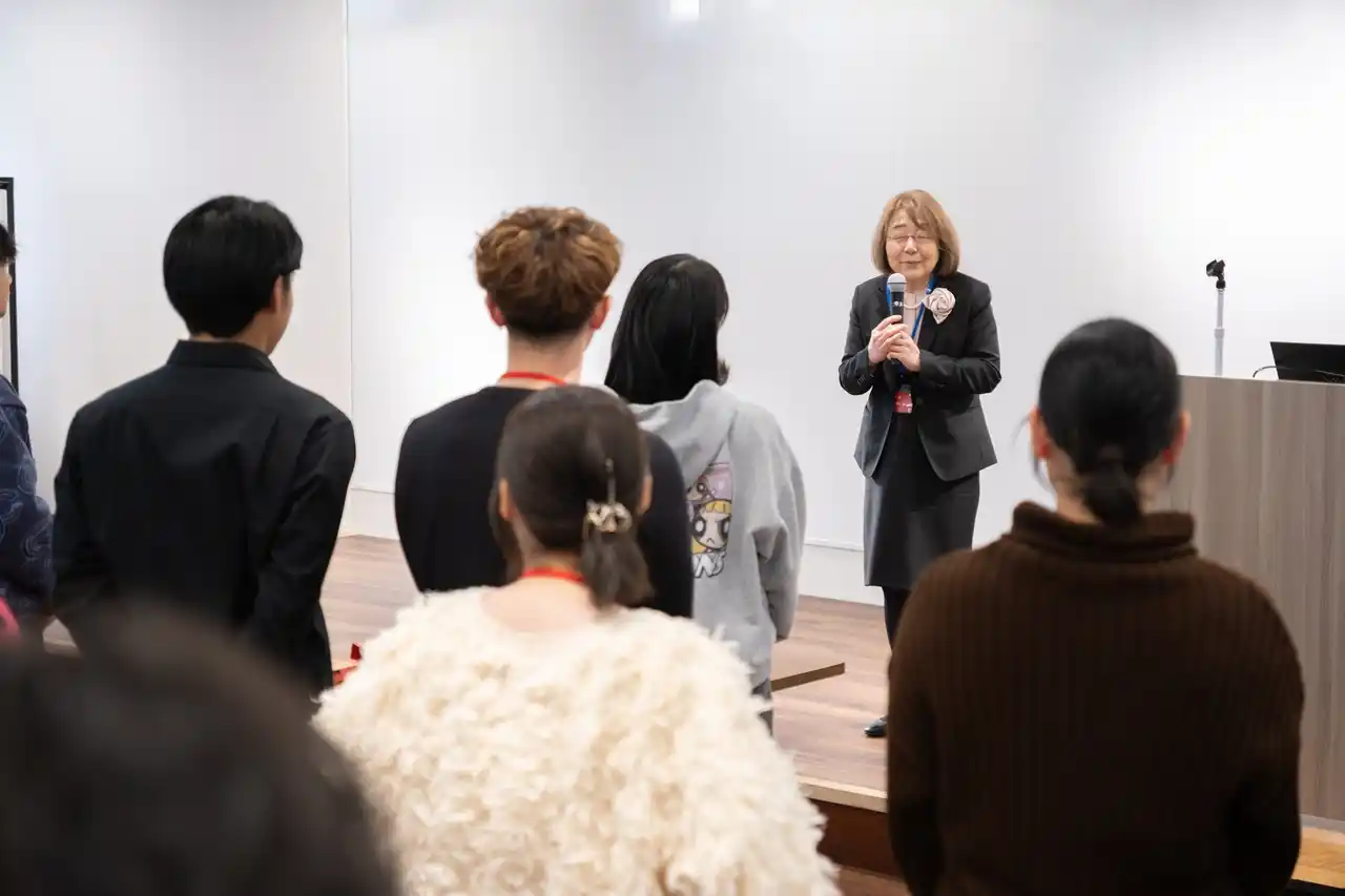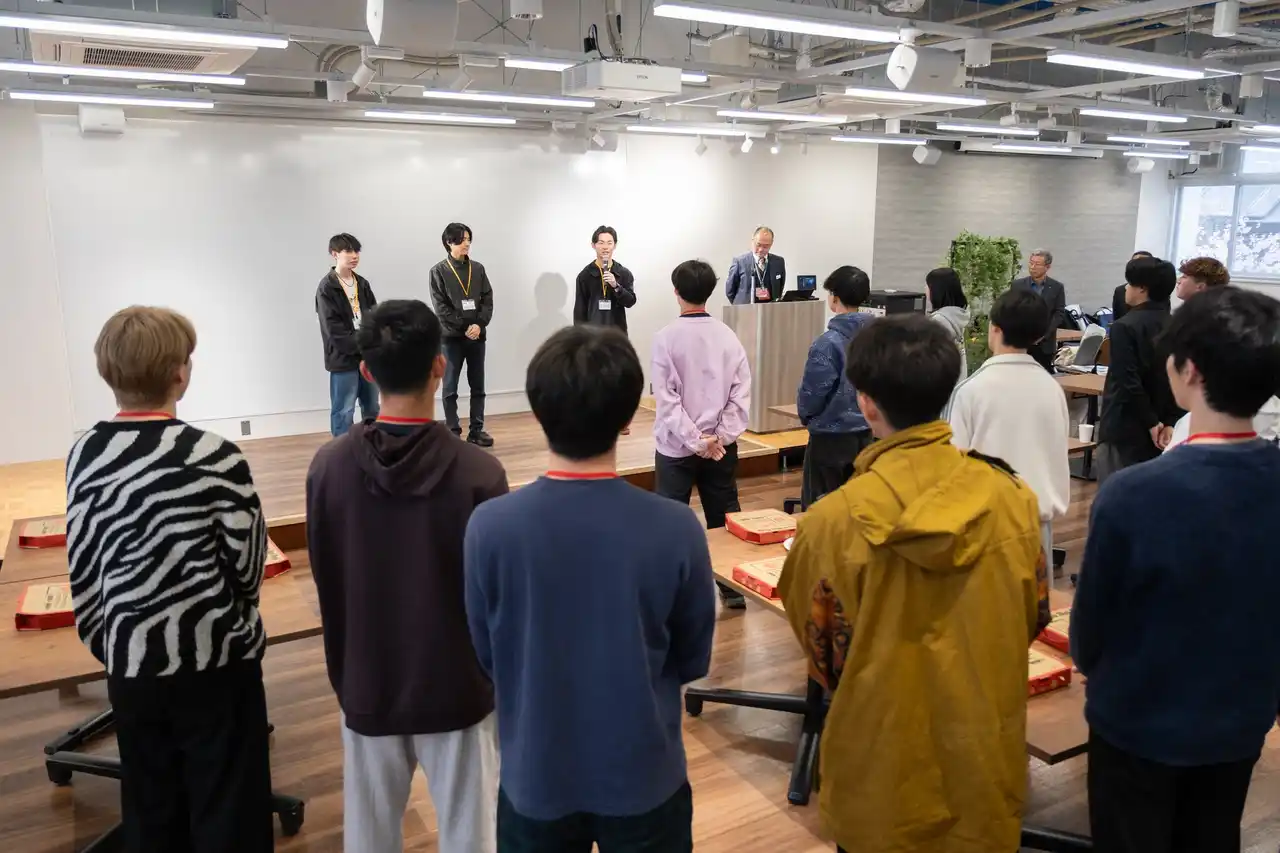また、ビジネスプランコンテストの舞台となってきたステージに立ち、一人ひとりが自己紹介を行いました。憧れの舞台に立つその時間は、これから始まる自分自身の挑戦を、少しだけ先取りするような瞬間でもありました。最後には全員で記念のスナップショットを撮影。節目の一日が、確かなカタチとして刻まれました。 |