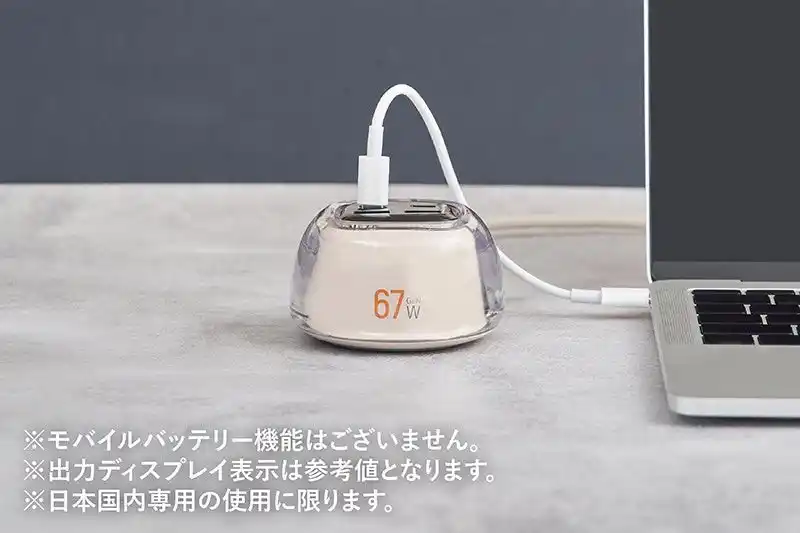GaN(窒化ガリウム)を採用し、コンパクトながらハイパワー充電が可能な急速充電器。 |