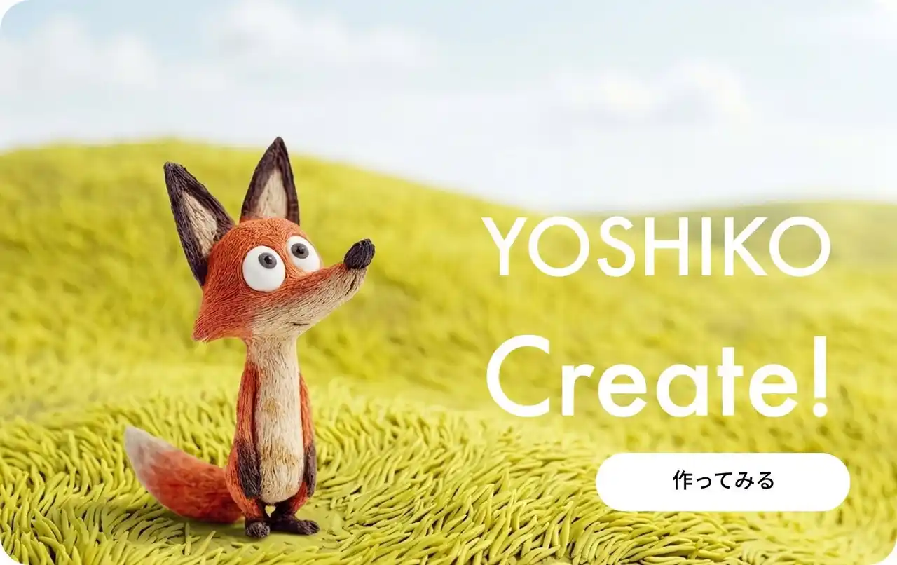 ユーザーは、キャラクター「Yoshiko」と楽しくチャット形式で会話をしながら、公式素材を活用したコンテンツ制作や監修の確認をスムーズに行うことができます。制作したコンテンツはSNSでのシェアが可能なほか、デジタルコンテンツやグッズの購入などもお楽しみいただけることを予定しています。 |