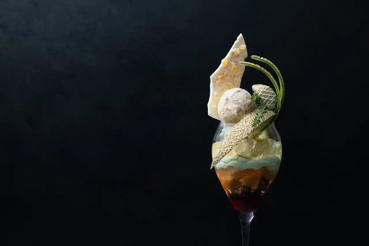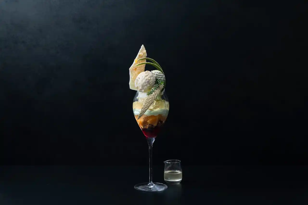 みずみずしいメロン果肉とメロンジェラートに、レモンカシスの甘酸っぱさと生姜果肉ジュレを重ねた春らしい一品。いちごムースとライム香るジンジャーゼリーのやさしいアクセントに、仕上げに添えたジンジャーエールシロップで味わいの変化もお楽しみいただけます。甘みと酸味が心地よく調和するパフェです。 |