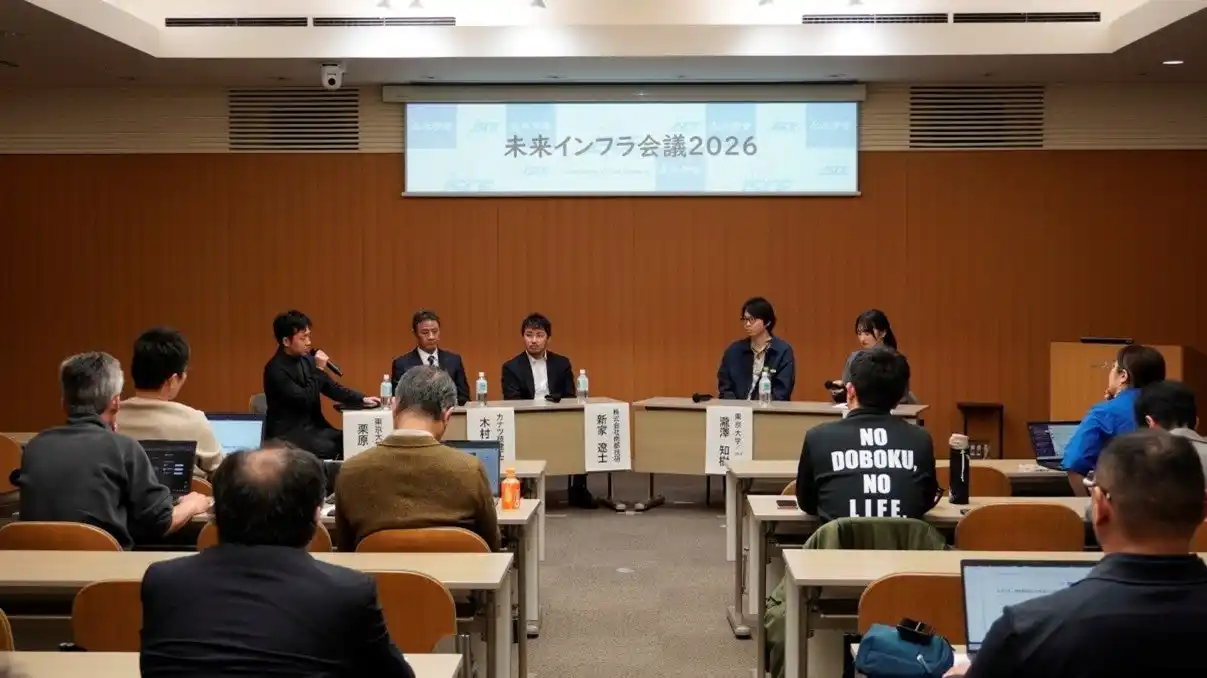 上記4名の講演者をパネリストに、東京大学/In.Fの栗原遼大氏をファシリテーターに迎えて、パネルディスカッションが行われました。DX推進の障壁に対する「小さな成功体験」と「外部評価」の重要性、そして技術革新が進んでも不可欠な「工学的素養」について議論しました。また、発注者依存の構造や法令基準のデータベース化における著作権問題など、制度面の課題も浮き彫りとなりました 。最終的には、単なるDXにとどまらず、業界全体のインダストリアルトランスフォーメーション(IX)を目指す方向性を確認し、会議を締めくくりました。 |