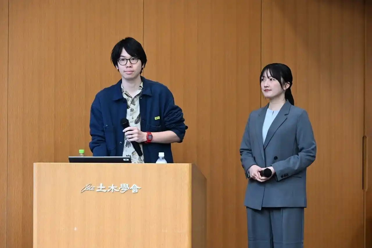 木村善信氏より、3次元設計データの活用による「施工フェーズのフロントローディング」の事例が発表されました。着工前のデータ作成により、従来の残業原因であった測量計算業務をほぼゼロに削減。一方で、ツールを使いこなすための「普遍の知識」の重要性を強調し、新入社員研修で縦断図読解などの基礎教育を徹底する「DX時代でも、基礎を大切にする教育」の事例が紹介されました。 |