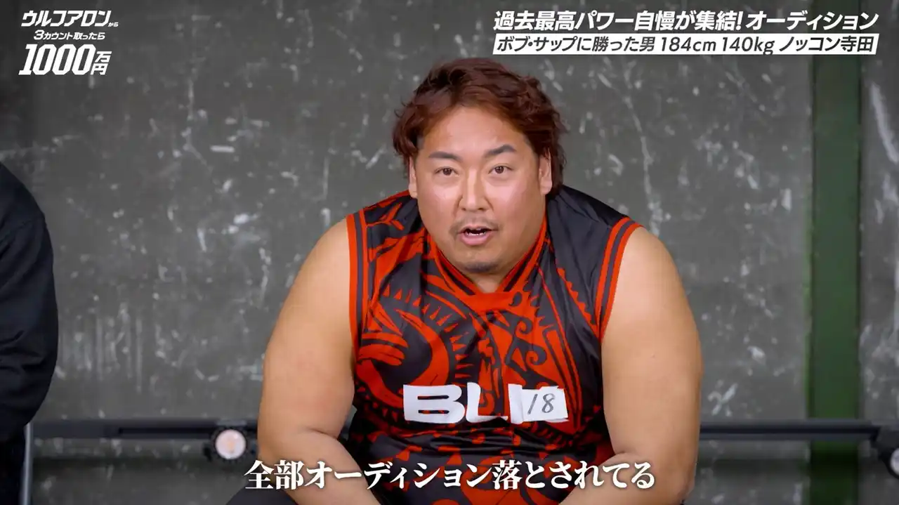 そして、これまでの「1000万円シリーズ」で落選し続けたラグビー系YouTuber・ノッコン寺田が執念の参戦を果たしました。過去に格闘技大会「Breaking Down(ブレイキングダウン)」でボブ・サップを破ったことを引き合いに出し、「大阪で一番力強くて、一番強い俺がなんで選ばれへんのかな」「1000万円企画といえば、ノッコン寺田」と落選の過去にフラストレーションを爆発。審査に参加した柔道選手に「弱そうやなお前ら」「お前ら俺のタックル耐えられるんかい」とふっかけるなど、悲願の挑戦権獲得に向け、闘志を燃やします。 |