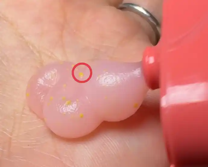 ジェルの中に見える黄色の粒には、6種のビタミンを凝縮配合。 |