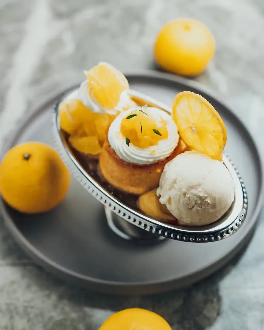 ベースとなるのは、安納芋のペーストを贅沢に練り込み、驚くほど濃厚でなめらかな口当たりに仕上げた自慢のプリン。黄金色に輝く果実から広がる華やかな香りと、高い糖度の中に潜む瑞々しい酸味が、そこに彩りを加えます。湘南ゴールドが、安納芋の深い甘みやカラメルのほろ苦さと重なり合う瞬間は、まさに至福のひととき。 |