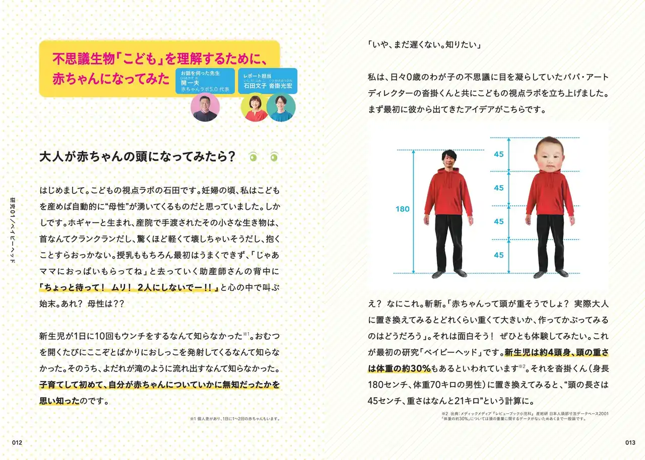 | 「赤ちゃんの頭はどれほど重い?」「こどもの時間はなぜ長い?」「泣くしか伝える方法がないって、赤ちゃんはどんな気持ち?」 | ||||||||||||||