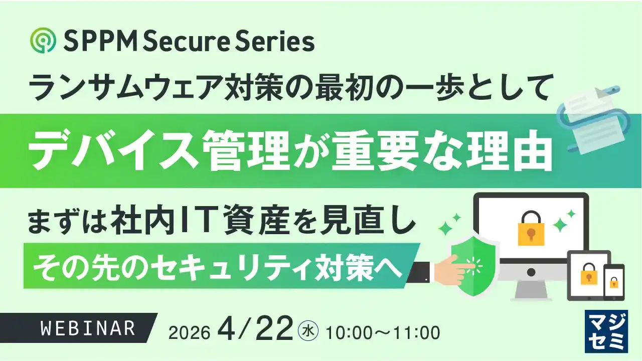 | マジセミ株式会社は「ランサムウェア対策の最初の一歩としてデバイス管理が重要な理由」というテーマのウェビナーを開催します。 |