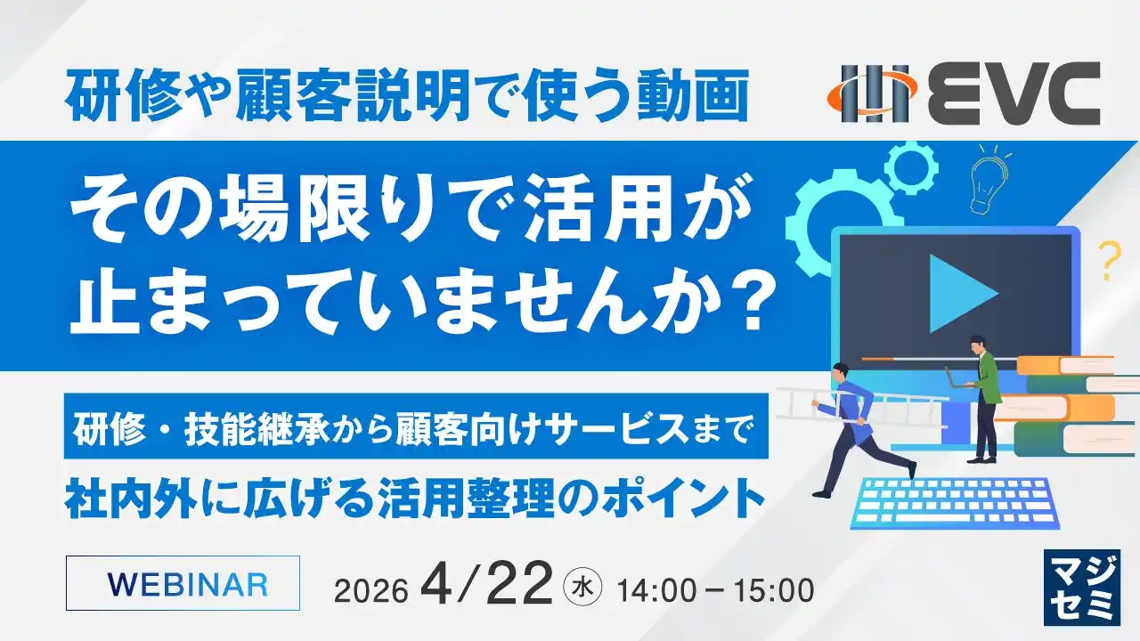 ■動画は、社内の教育も社外の価値提供も一気に底上げする 動画は、単なる記録ではありません。 研修、技能継承、社内勉強会などの社内業務を効率化し、 同じ内容を何度でも、誰にでも、均一に届けられる“仕組み”になります。 さらに、動画は社外にも大きな価値を生みます。 顧客向けの説明、代理店教育、資格更新研修、 スポーツやイベントの限定配信、有料コンテンツ提供など、 動画はそのまま“新しいサービス”として成立します。 本セミナーでは、業種別の活用例をもとに、 動画が社内外の価値提供をどう変えるのか を具体的に紹介します。 ■社内業務が“均一化・効率化”される 動画は、社内の教育・情報共有を大きく変えます。 同じ説明を何度も行う必要がなくなり、拠点や職種が違っても、 同じ品質の内容を、必要なタイミングで届けられる仕組み がつくれます。 ・研修(新人・中堅・管理職)の標準化 ・技能継承(製造・建築・食品など)の属人化解消 ・社内勉強会・技術共有のアーカイブ化 ・営業・品質・技術部門のナレッジ共有 ・社長メッセージやイベント記録の全社展開 これらはすべて、“動画があるだけで再現性が高まる” 活用例です。 ■社外ビジネスが“拡張・高度化”する 動画は社外向けにも強力な価値を生みます。 顧客、代理店、パートナー、資格講座受講者など、 対象者ごとに必要な内容を確実に届けられる“サービス” に変わります。 ・顧客向けの商品説明・導入教育 ・代理店向けの販売トレーニング ・資格取得の事前学習・更新研修 ・有料コンテンツ配信(講座・専門知識・エンターテイメント) ・スポーツ・イベントの限定配信 ・技術商社・認証機関の専門情報提供 動画は、単なる記録ではなく、 “新しい収益源”にも“顧客価値の向上”にもつながる資産 です。 ■こんな人におすすめ ・研修・技能継承の効率化や標準化を進めたい方 ・社内のナレッジ共有を仕組みとして整えたい方 ・顧客向けの説明や教育を動画で強化したい方 ・代理店・パートナーへの情報提供を均一化したい方 ・資格講座・更新研修などを動画で提供したい方 ・有料コンテンツや限定配信など、新しいサービスを検討している方 ・Zoom・Teams+SharePointでは対応しきれないと感じ始めている方 ■主催・共催 株式会社EVC ■協力 株式会社オープンソース活用研究所 マジセミ株式会社 |