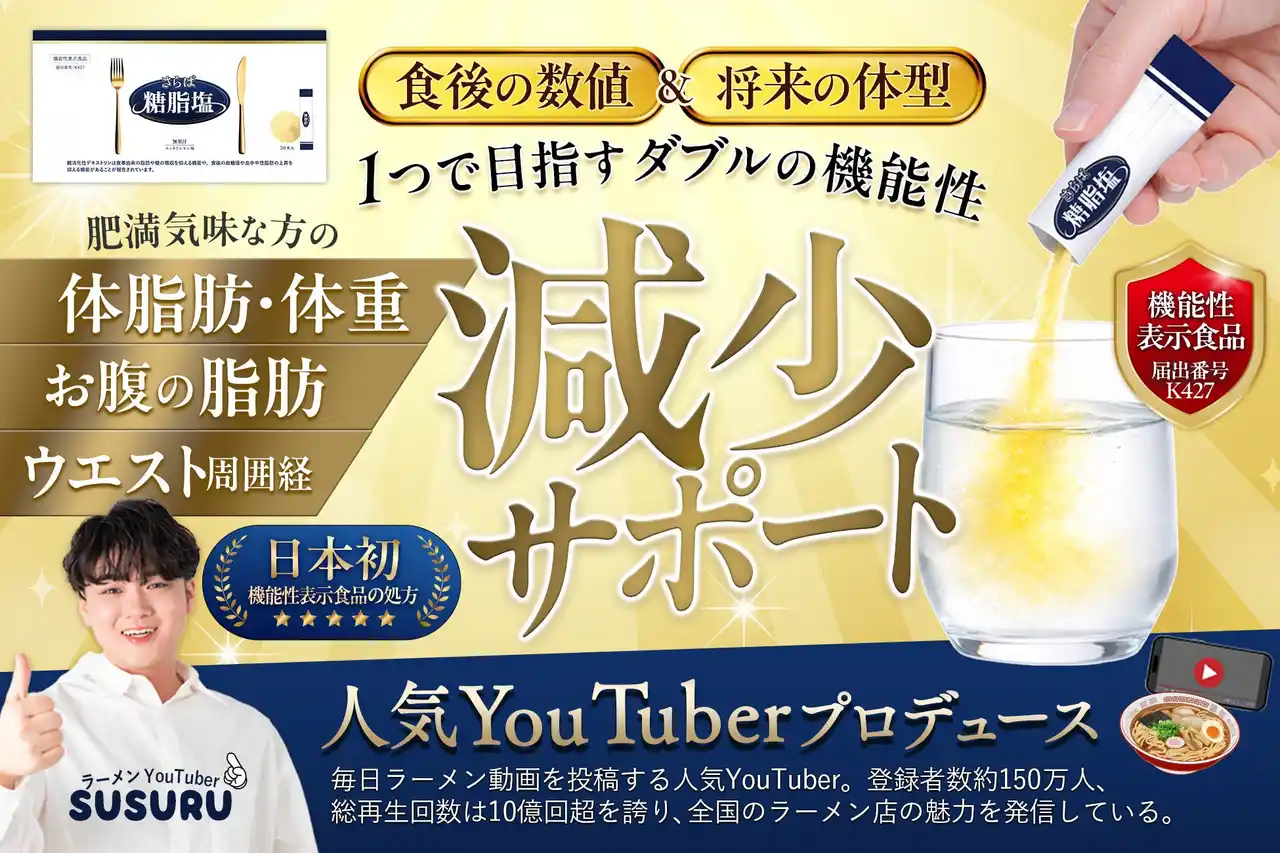 株式会社LADDER(本社:東京都港区、代表:持丸)は、食生活をサポートするサプリメント「さらば糖脂塩」を、機能性表示食品としてリニューアルし、2026年4月8日(水)より販売開始いたします。 |