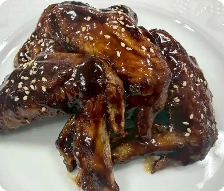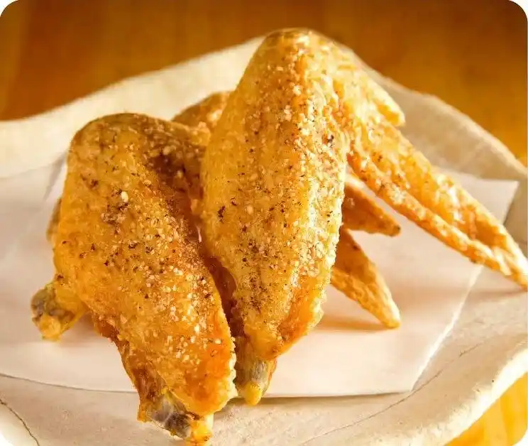 日本三大地鶏のひとつ“名古屋コーチン”を使用。オリジナルスパイスと醤油を配合した風味豊かな甘辛タレで、外はパリッ、中は濃厚&ジューシーな手羽先のからあげ。 |