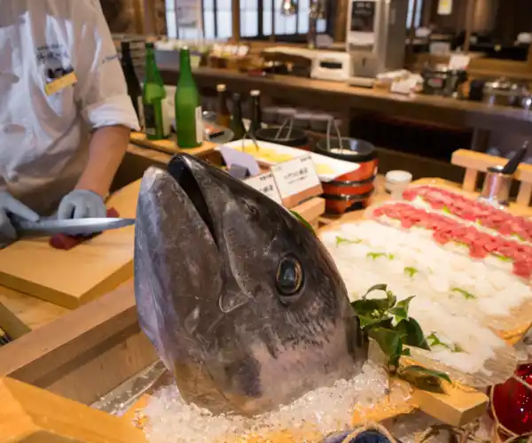 解体したばかりの本マグロをそのままお刺身で、お寿司で、はたまたステーキで!当館ならではのライブ感あふれる特別な夕食時間をご体験くださいませ。 |