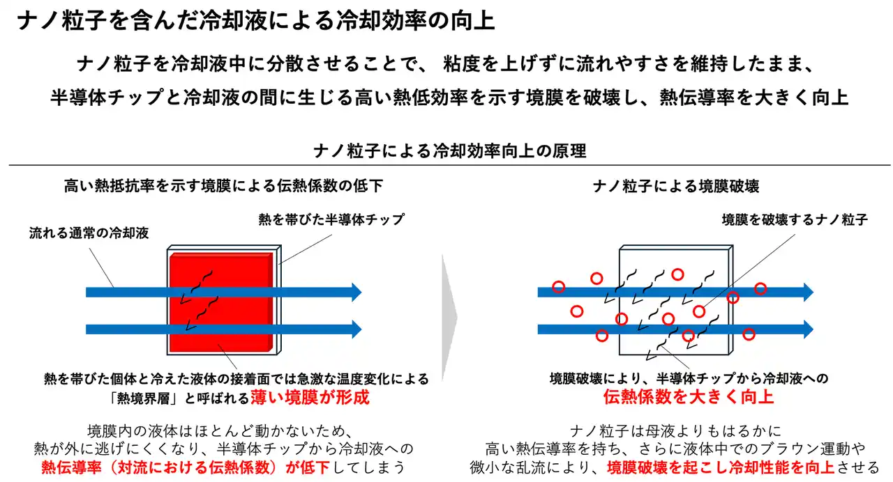 1年目に取り組んできたナノ粒子生成技術を活用したAIデータセンター向け液浸冷却液の開発事業をさらに発展させ、2年目はナノ粒子分散型冷却液の最適化と量産化に取り組んでまいります。 |