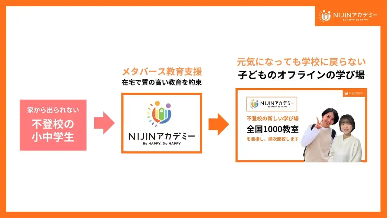NIJINが設立した不登校オルタナティブスクール「NIJINアカデミー」は、子どもたちが自宅からでも、オンラインを活用して質の高い教育を受けられる”新しい学びの選択肢”として、注目を集めています。 |