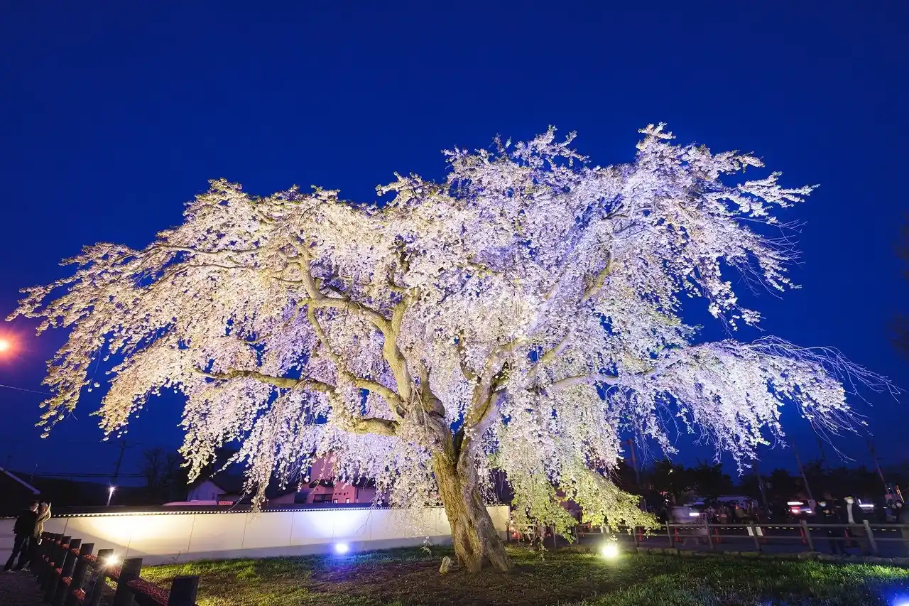 境内に咲く大きなしだれ桜は、北斗市を代表する春の風景のひとつで、優雅に枝を垂らす姿が訪れる人々を魅了します。夜間にはライトアップにより、柔らかな光に照らされた幻想的な景色を楽しめます。日中とは異なる静かな時間が流れる特別な花見スポットとなっております。 |