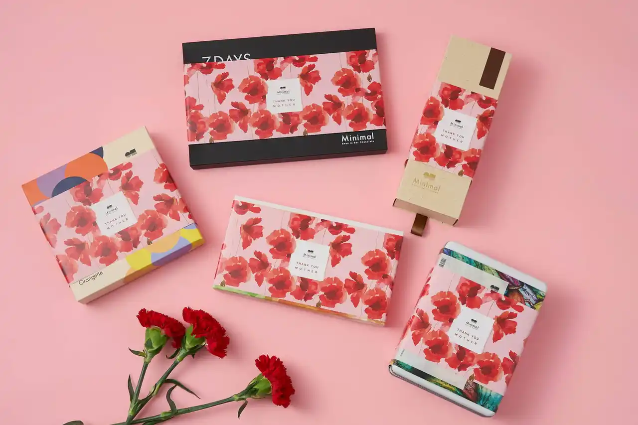バレンタインで好評を博した味わいはそのままに、母の日という特別な日にふさわしい限定デザインのラッピングもご用意しました。 |