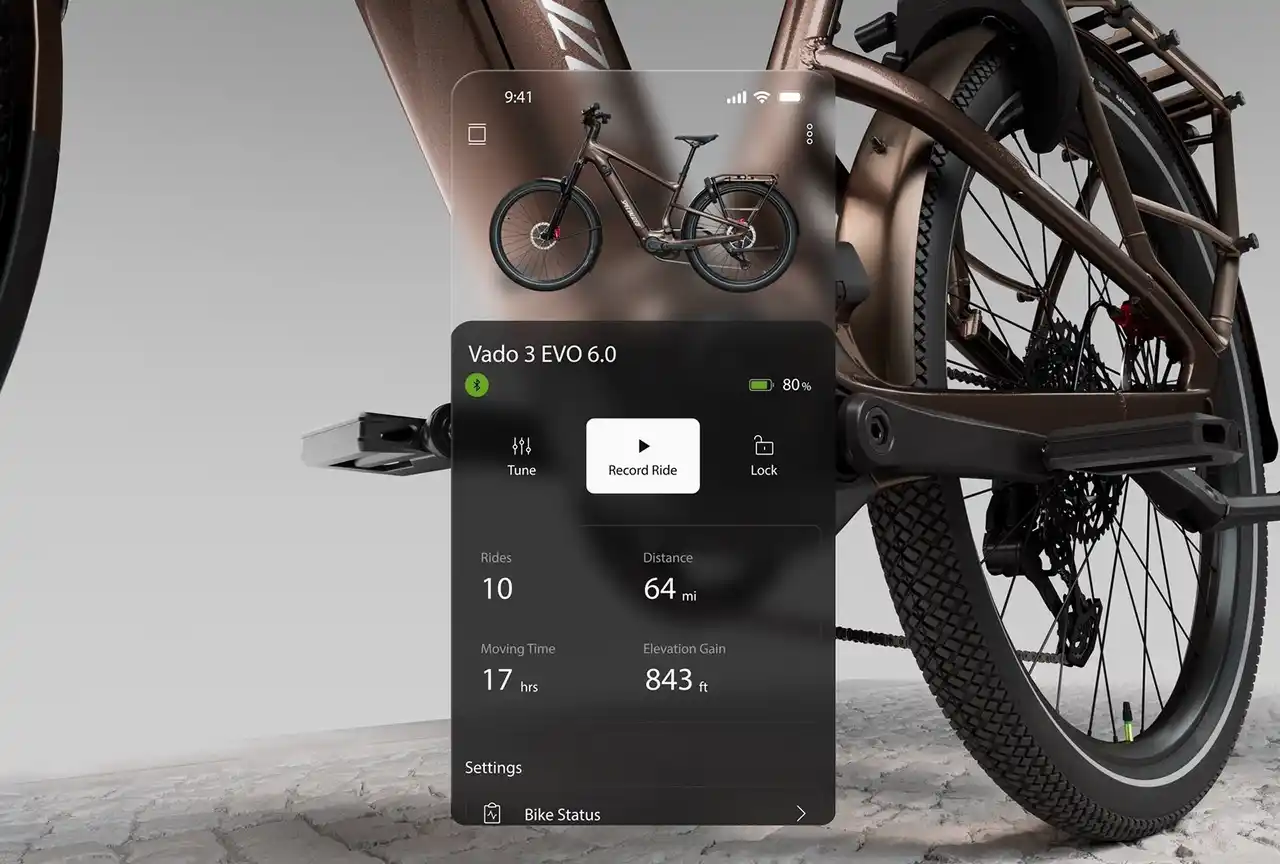 スペシャライズドアプリはあなたのスマートフォンとVado 3 EVOをシームレスに接続し、バイクやアクセサリーのロック・アンロック、オートスタートのライド記録、パフォーマンスデータやモーターのカスタムチューニングオプションへのアクセスを可能にします。Apple Watch用スペシャライズドアプリを使えば、よりシンプルな操作が可能。ライドの記録はApple Health、Strava、Komootなど、おなじみのアプリへシームレスに連携し、分析できます。あなたのライド、トレーニング、ライフスタイルをサポートします。 |