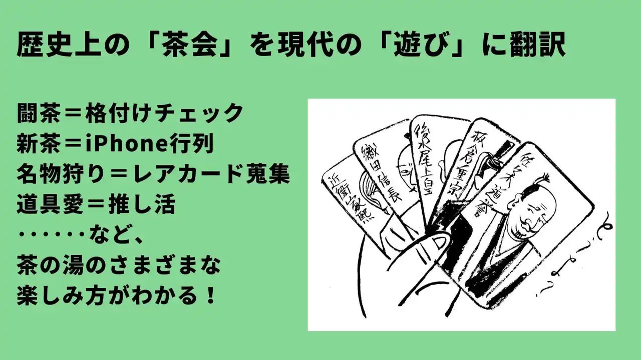 抹茶の味を当てる「格付けチェック」さながらの対戦ゲーム「闘茶」。天下人が自らお酌をするホームパーティのようなもてなし。天皇らが夜更けまで楽しんだ “パリピ” な大宴会・・・・・・。型にとらわれない茶の湯とは? |