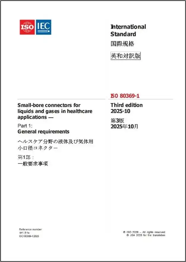 ISO 80369-1:2025 ヘルスケア分野の液体及び気体用小口径コネクタ-第1部:一般要求事項 |